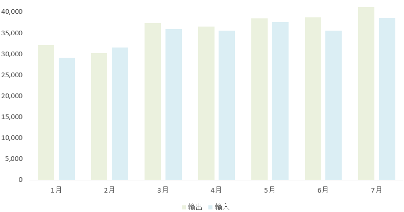 2025年7月のベトナムからの輸出額は411億ドルで、6月の387億ドルから6.3%増加している。2025年1月~7月の平均月次増加率は4.2%。7月の輸入額は386億ドルで、7月の貿易収支としては25億ドルの黒字。