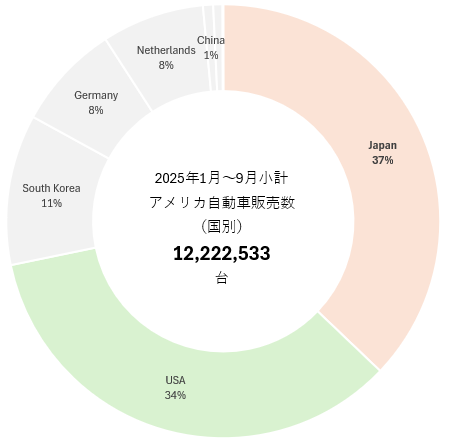 2025年1月~9月 アメリカ自動車販売数(国別)(台)