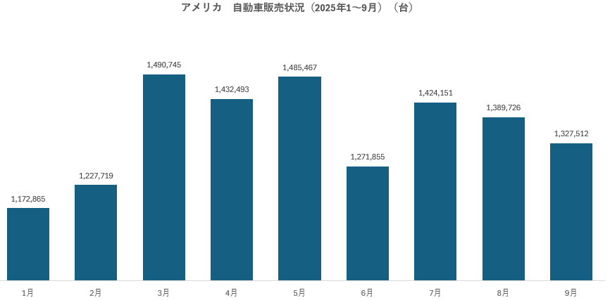 2025年1月~9月 アメリカ自動車販売数(月次)(台)