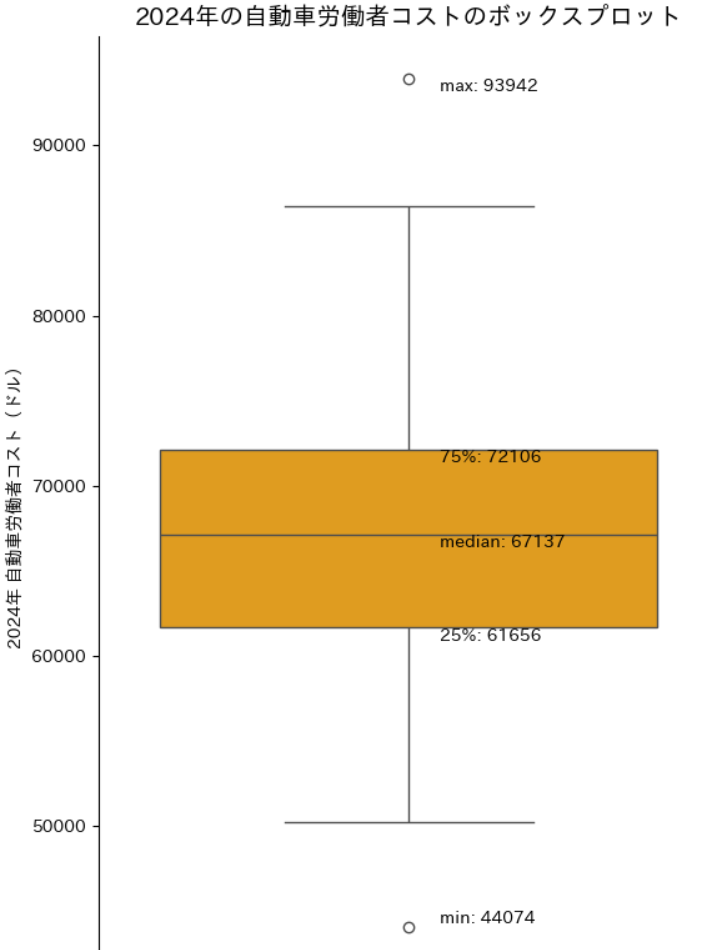 2024年 アメリカの自動車部品製造労働者、年平均コスト(ドル)