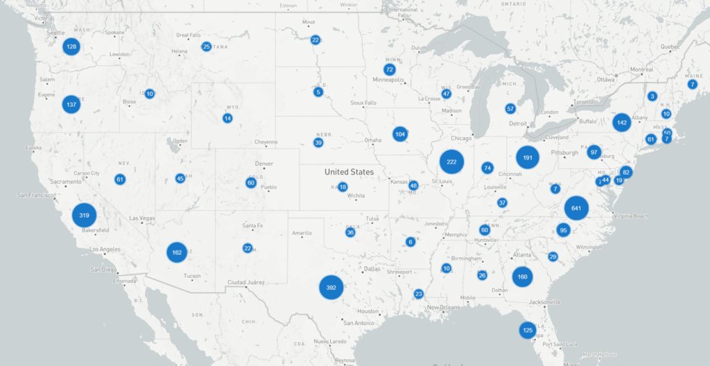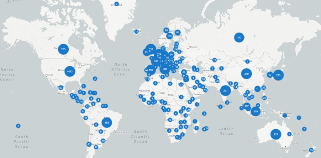 Chat GPT含めAIがさらに爆発的に普及しているが、それを支えているデータセンターの数をみてみた。