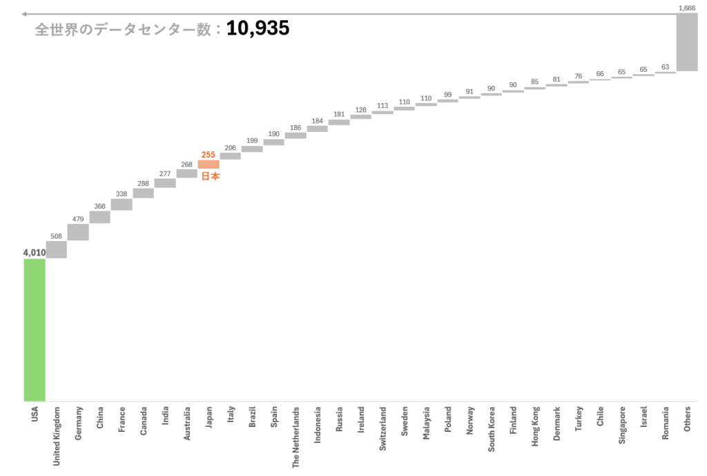 - 全世界のデータセンター数は10,935ケ所