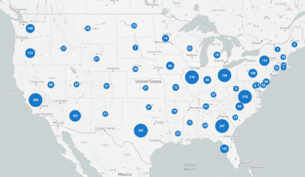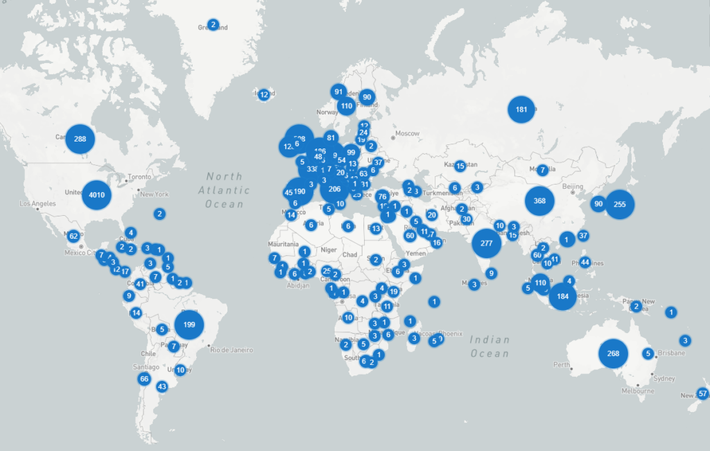 | 1 | USA | 4,010 | 36.7% | Virginia | 570 | 14.2% | Tokyo | 106 | 41.6% | Shanghai | 56 | 15.2% | |||
