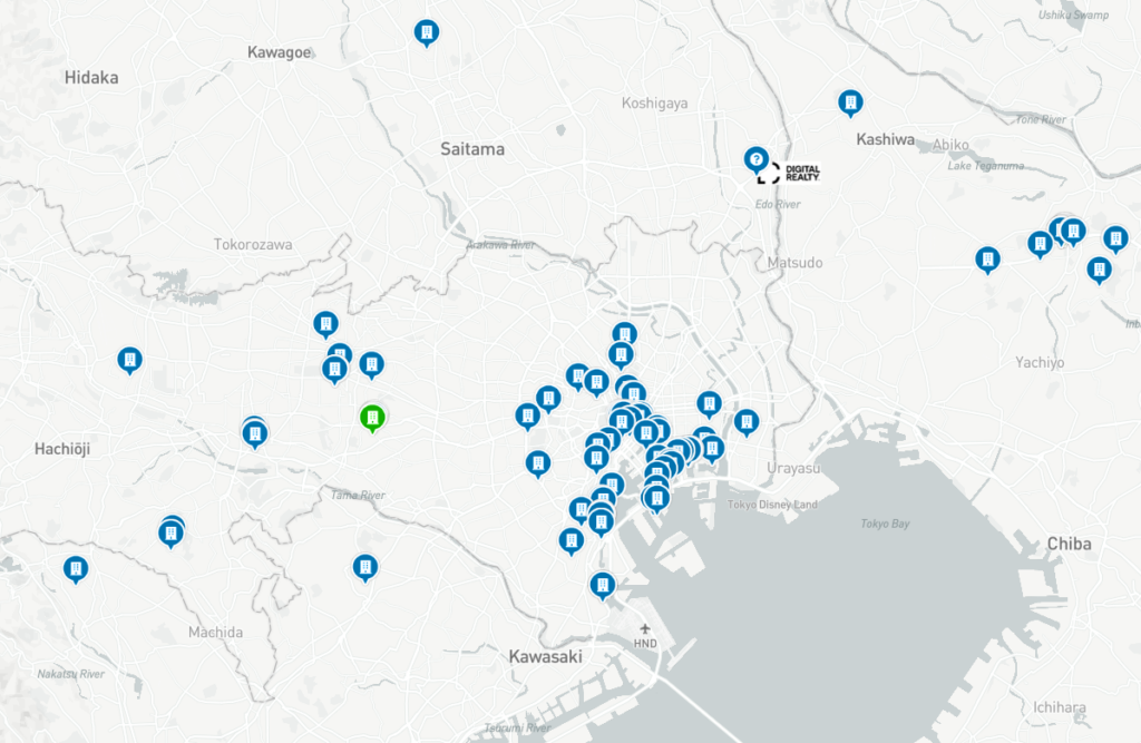 日本のデータセンター数をみてみた。データはdatacenter.comからの引用(以下の地図も同サイトからの引用)。