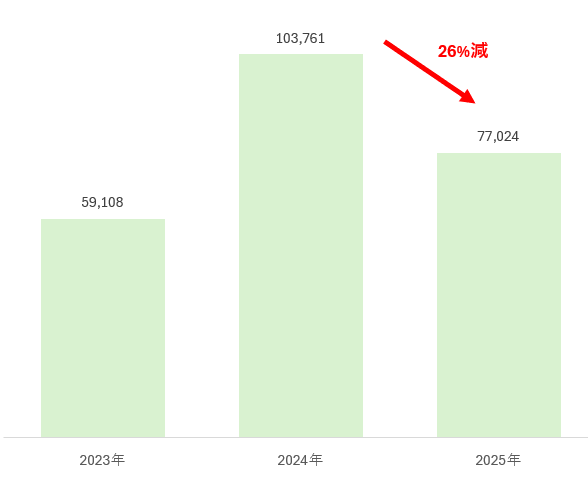 2023年、2024年、2025年における1月~7月小計のアメリカからの輸入数(台)推移