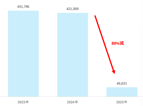 2025年7月のアメリカの無人機(ドローン)の輸出数は6,763台、輸入は2,336台と非常に少ない。1月~7月の小計でみると、2023年には輸出が59,108台、2024年には103,761台、2025年には77,024台と、2024年比では26%減少している。一方、輸入では、2023年に850,134台であったのが、2024年には421,569台、そして、2025年には46,631台と急激に減少している(対2024年比89%減)。