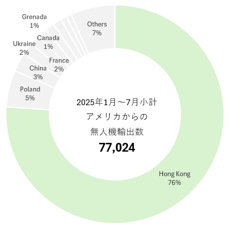 2025年1月~7月小計 アメリカからの無人機(ドローン)輸出数国別内訳