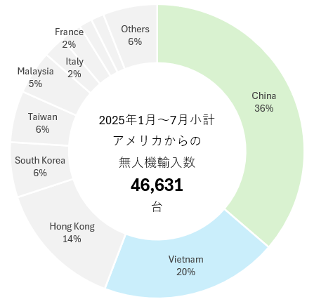2025年1月~7月小計 アメリカからの無人機(ドローン)輸入数国別内訳