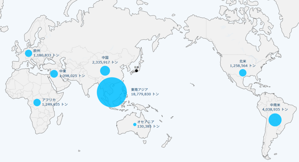 - 2025年の輸出量を地域別でみると、東南アジア向け(中国除く)が1,878万トン(62%)でトップ。
