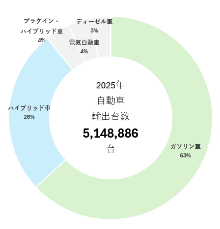 - ハイブリッド車(ガソリン)輸出台数:135.2万台、2024年から3.7%増