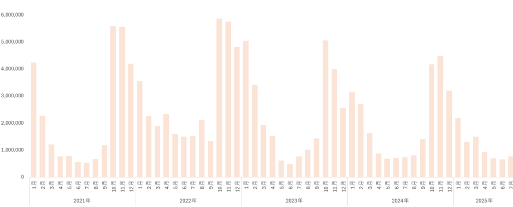 2021年1月から2025年7月 アメリカの大豆輸出額(千ドル)