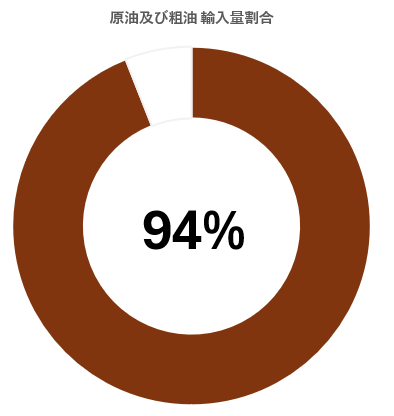 - 2025年における日本のホルムズ海峡内7ケ国からの原油及び経由(概況品:30301)の輸入量は1億2,896億KLで、全輸入量(1億3,718億KL)の94%にも及ぶ