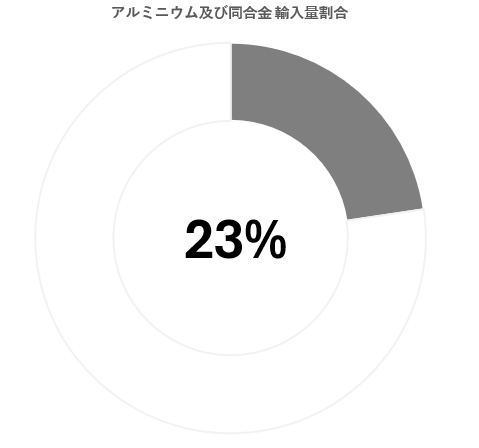 2025年における日本のホルムズ海峡内7ケ国からのアルミニウム及び同合金(概況品:61507)の輸入量は53万トンで、全輸入量(235万トン)の23%に及ぶ