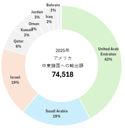 2025年におけるアメリカの中東諸国への輸出額(745億ドル)を国別でみると、