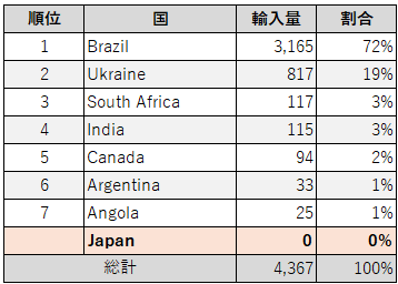 HSコード7201(銑鉄及びスピーゲル【なまこ形、ブロックその他の一次形状のものに限る】)はブラジルからが圧倒的に多い。