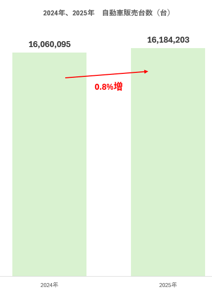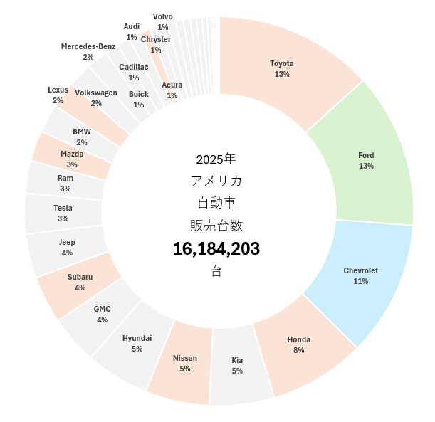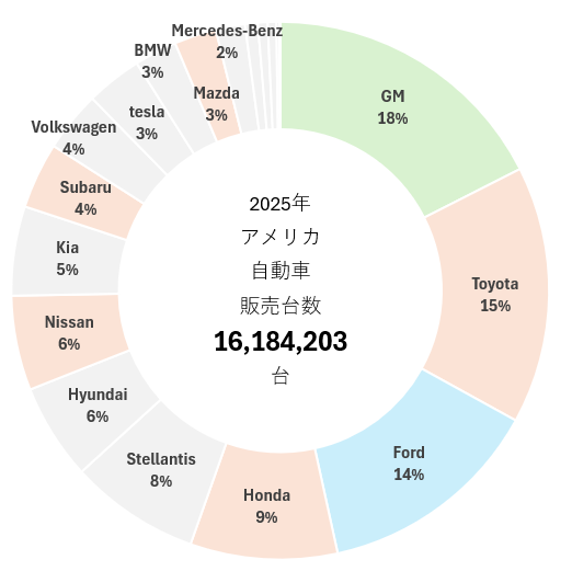 2025年通年のアメリカにおける自動車販売台数は1,618万台。2024年の1,606万台から0.8%増とほぼ横ばい。