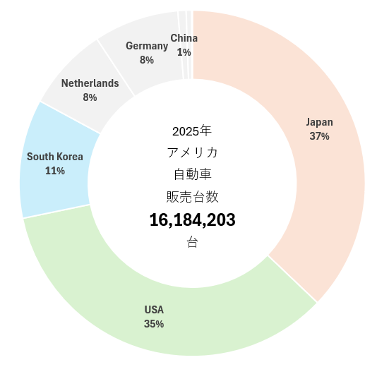 - 日本がトップを維持しているが、日本からの輸出、メキシコ・カナダでの生産、輸出、アメリカ国内製造の増減など、関税で、どのように動き、どう影響したのか、その内訳の詳細分析が必要