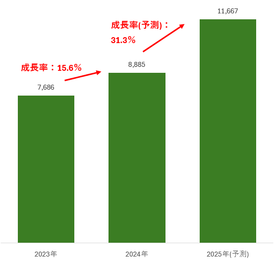 2023年、2024年、2025年(予測)通年合計輸出量(トン)