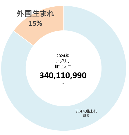 2024年のアメリカにおける、アメリカ国内生まれ、外国生まれの推定人数(人)の状況をみてみた。