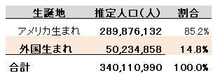 - アメリカ国内生まれは推定2億8,989万人(85.2%)