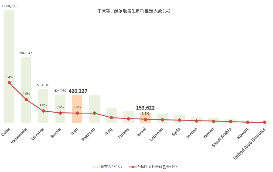 アメリカの2024年の外国生まれは(推定5,0235万人)を中東、紛争、今後紛争の起きそうな国別にみると、