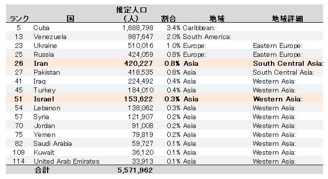 - イスラエル生まれが15万人(0.3%)
